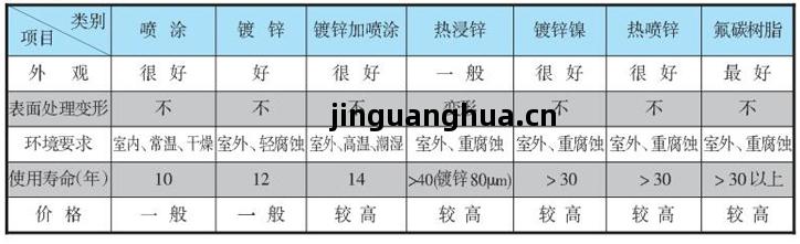 我公(gong)司橋(qiao)架(jia)表(biao)面(mian)處理可(ke)分(fen)為噴(pen)塗(tu)、鍍(du)鋅、鍍(du)鋅加(jia)噴(pen)塗(tu)、熱(re)浸(jin)鋅、鍍(du)鋅鎳(nie)、熱(re)噴(pen)鋅,對(dui)各自(zi)的(de)性能(neng)和特點(dian)進行(xing)比較列(lie)表(biao)如下(xia):