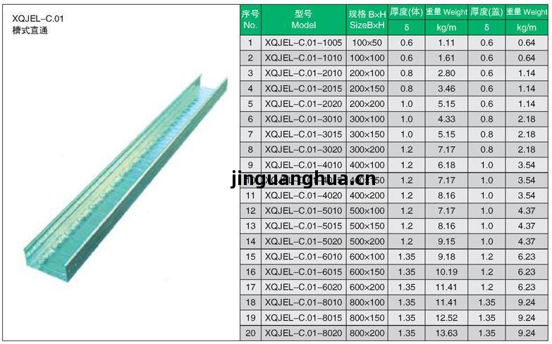 XQJEL_C.01槽(cao)式直(zhi)通(tong)產品型號、規(gui)格(ge)、重量(liang)等(deng)參(can)數(shu)及(ji)XQJEL_C槽(cao)式電(dian)纜橋(qiao)架在不(bu)同跨(kua)距(ju)下(xia)允(yun)許(xu)均布(bu)載荷(he)變(bian)形(xing)量(liang)。