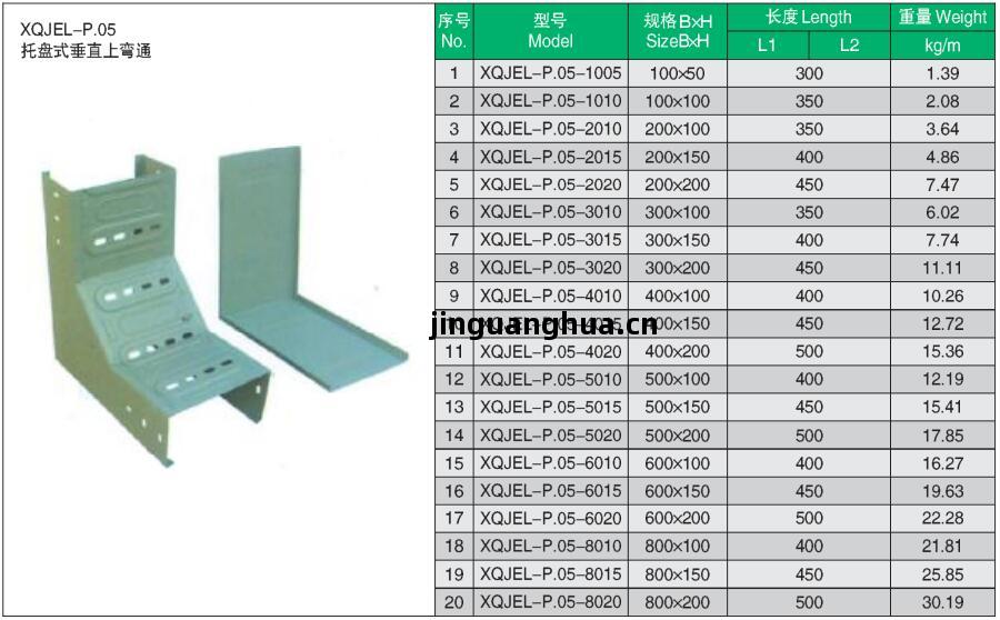 XQJEL_P.05托(tuo)盤式上(shang)彎(wan)通產(chan)品型號、規(gui)格、重(zhong)量(liang)等(deng)參(can)數(shu)及(ji)XQJEL_P托(tuo)盤式電(dian)纜(lan)橋(qiao)架(jia)在(zai)不同跨(kua)距下(xia)允許均布載荷變形量。