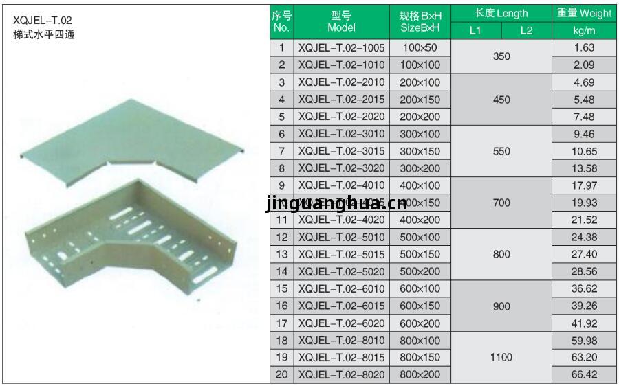 XQJEL_T.02梯(ti)式彎通(tong)產品(pin)型(xing)號、規(gui)格(ge)、重量等(deng)參(can)數(shu)及(ji)XQJEL_T梯(ti)式電(dian)纜橋(qiao)架在不(bu)同(tong)跨(kua)距(ju)下允許均布載(zai)荷(he)變形量。