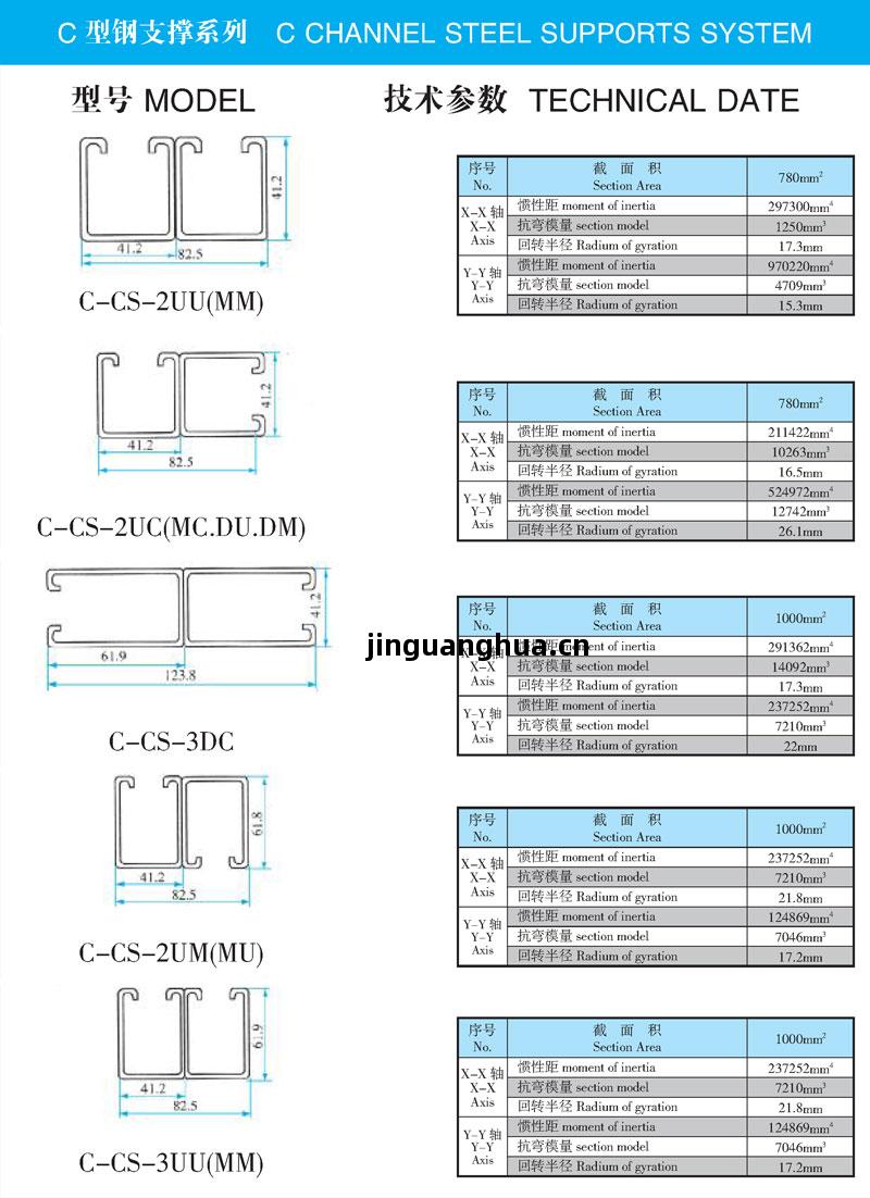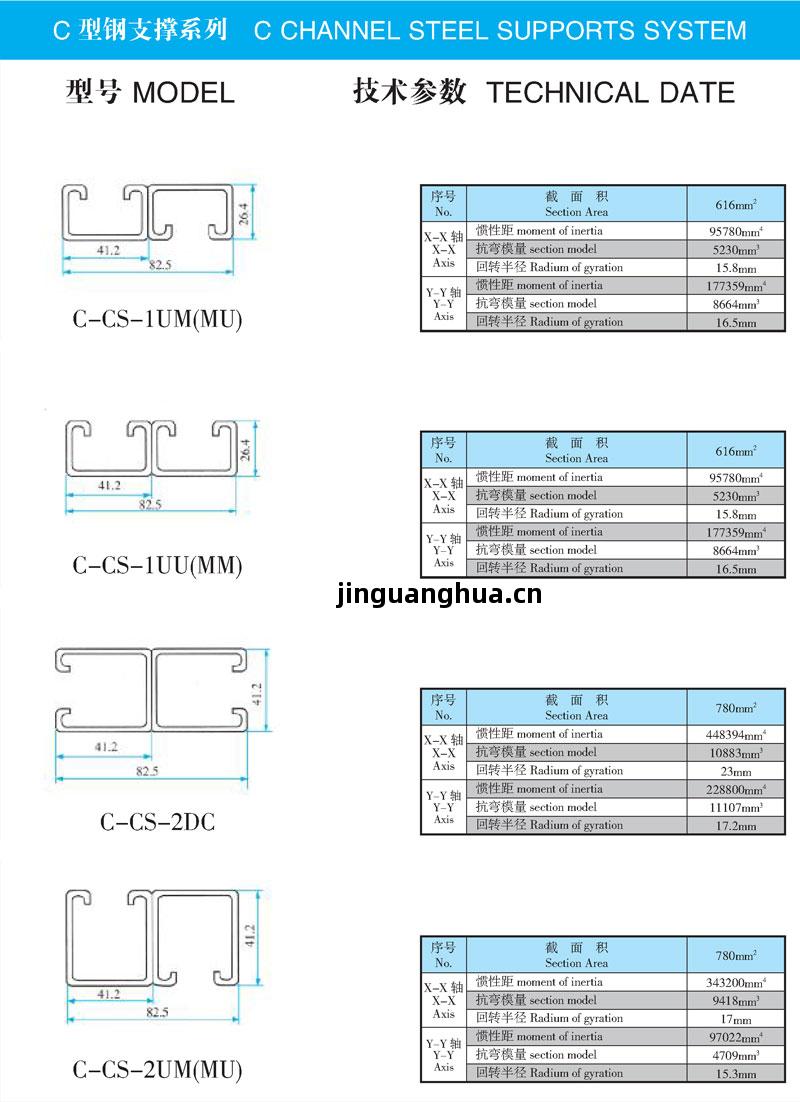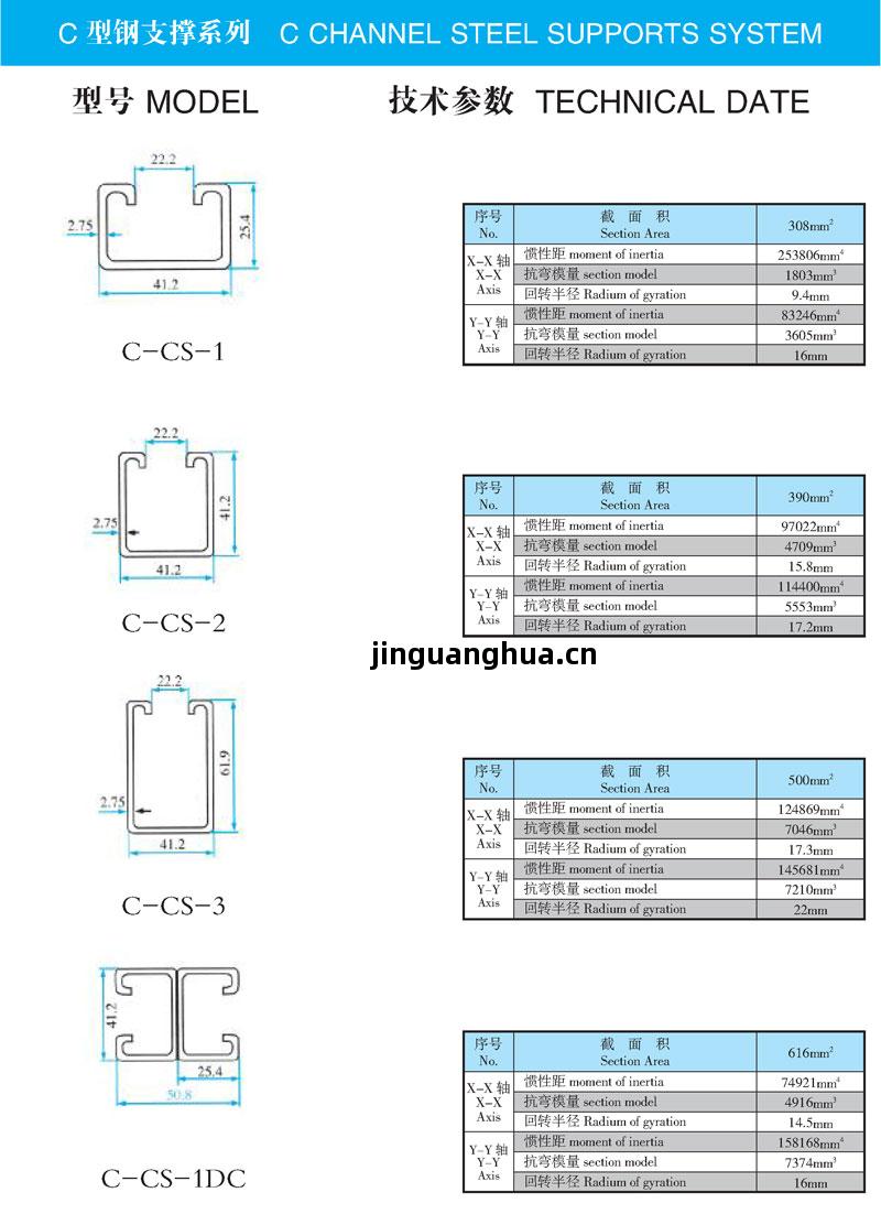 C型(xing)鋼(gang)支(zhi)撐(cheng)系(xi)列是我公(gong)司引(yin)進國(guo)外先(xian)進技(ji)術工藝,開發的產品。也(ye)是目(mu)前國(guo)際上廣泛(fan)應用(yong)的支(zhi)撐(cheng)件(jian)。具有(you)結構合(he)理(li)、安裝(zhuang)靈括(kuo)、強(qiang)度可(ke)靠等(deng)優點(dian)。可(ke)任意(yi)調(tiao)節支(zhi)撐(cheng)的高(gao)度及問距。適(shi)合(he)於(yu)電纜(lan)橋架、通(tong)風管道等(deng)各種患掛(gua)、吊裝(zhuang)設備(bei)的安裝(zhuang) 。