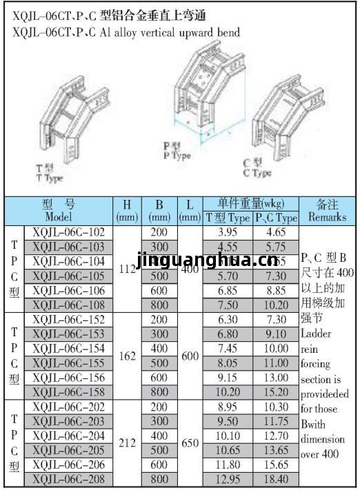 XQJL-06CT、P、C型(xing)鋁(lv)合金垂直(zhi)上彎(wan)通橋(qiao)架