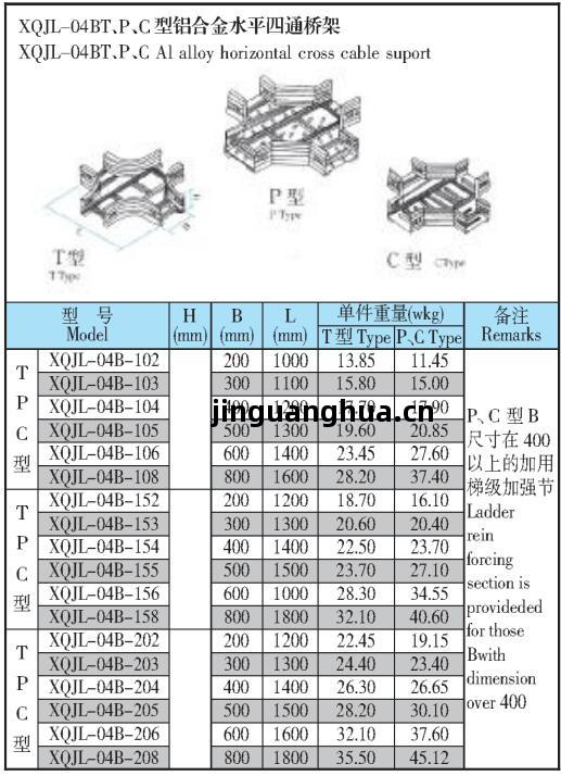 XQJL-04BT、P、C型(xing)鋁(lv)合金水平四通(tong)橋架(jia)