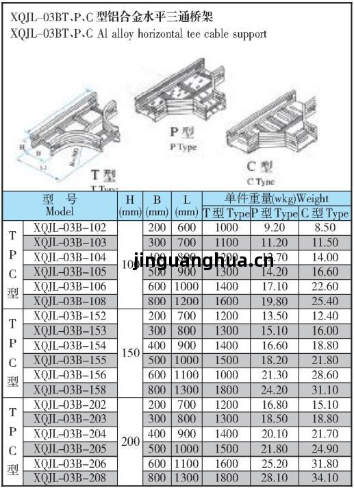 XQJL-03BT、P、C型(xing)鋁合金(jin)水平三(san)通(tong)橋(qiao)架
